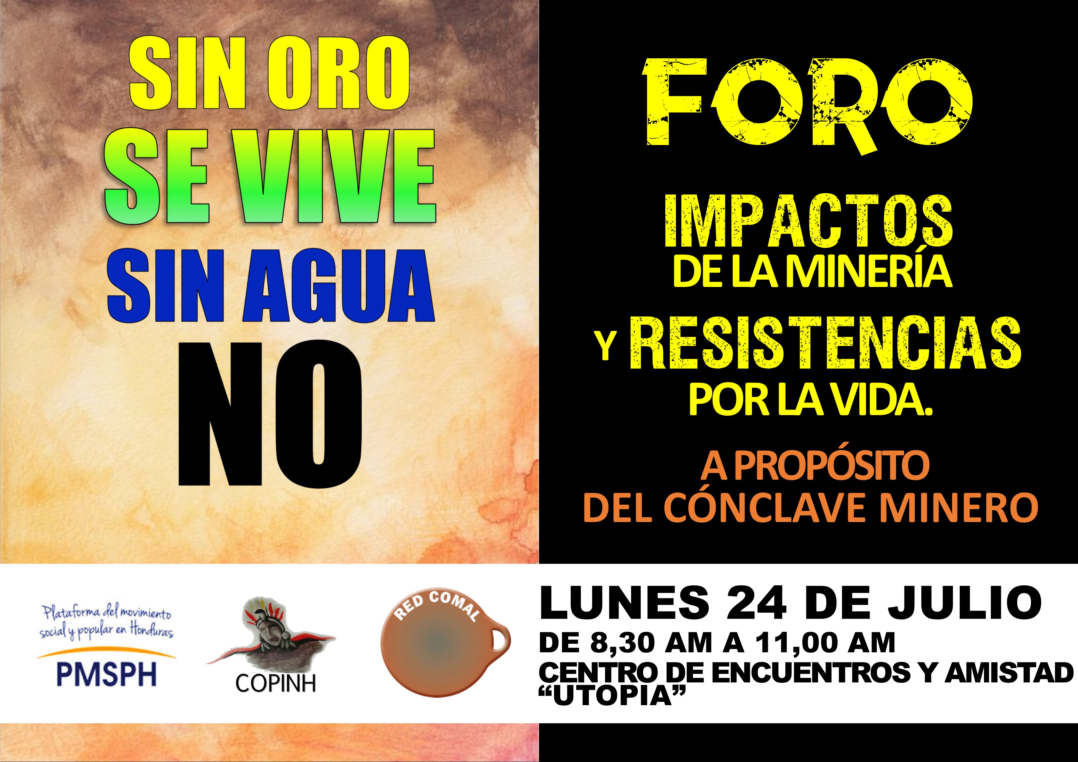 FORO: “Impactos de la minería y Resistencias por la Vida. A propósito del Cónclave Minero” COPINH 23/07/2017 . COPINH Ver contenido de COPINH