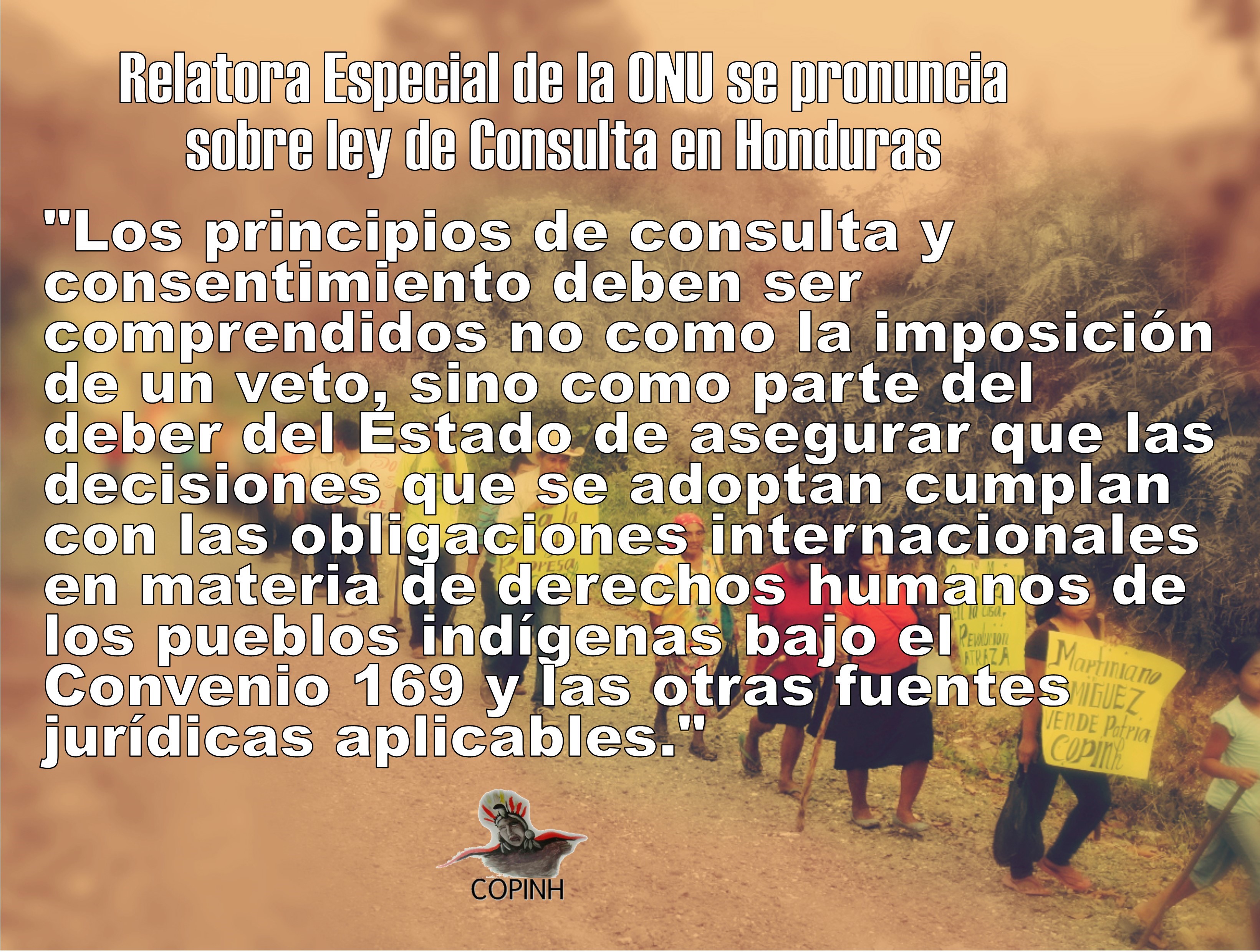 Relatora Especial de la ONU se pronuncia sobre ley de Consulta en Honduras COPINH 01/08/2017 . COPINH Ver contenido de COPINH