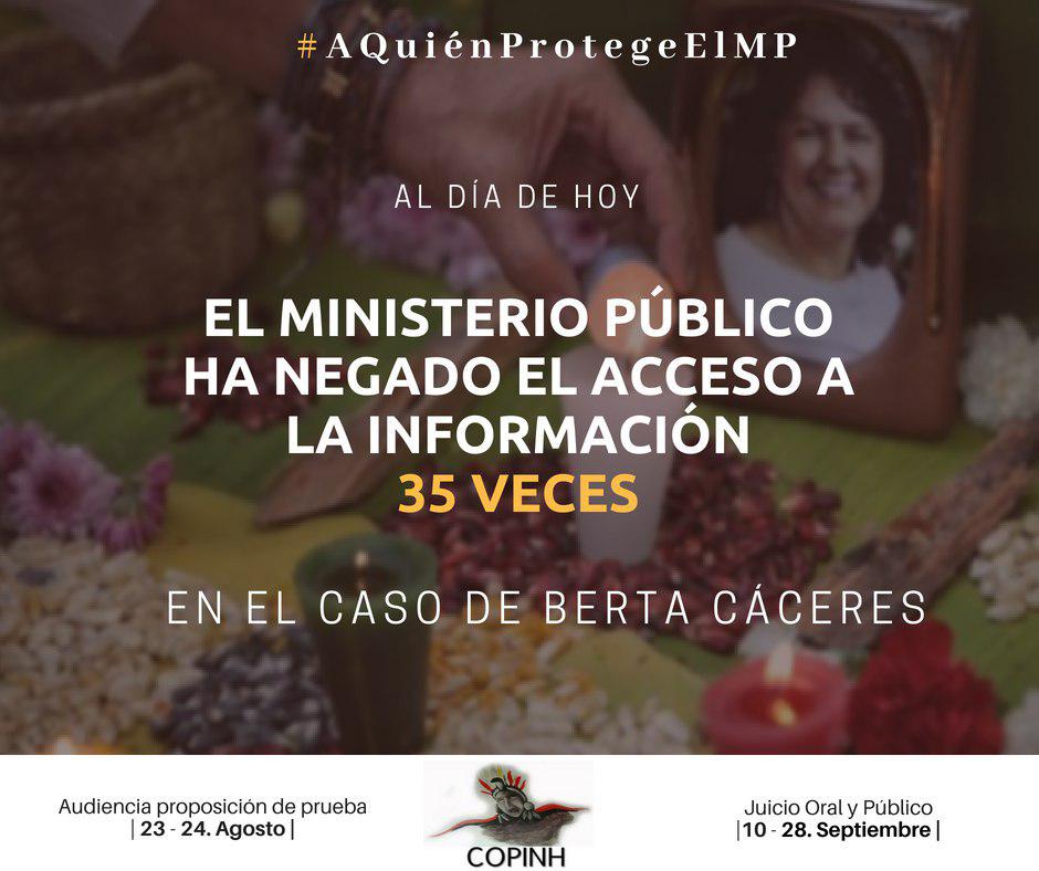 La falta de acceso a la información se utiliza para ocultar verdades, para beneficiar a los culpables de la muerte de nuestra compañera Berta. Se utiliza para manipular la verdad y evitar que los máximos responsables de su muerte enfrenten a la justicia.