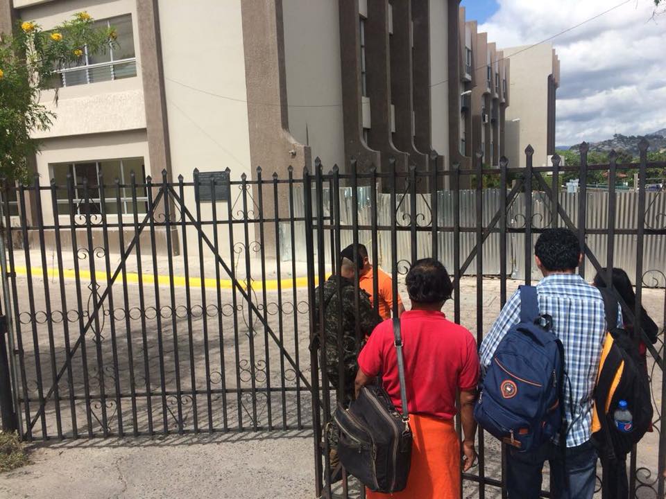 Denunciamos a los encargados de seguridad en la Corte Suprema de Justicia por limitar el acceso a nuestros compañeros y compañeras del COPINH. Desde el día de ayer han habido una serie de incidentes en los que se quiere obligar a que gente de las comunidades se quiten su pañuelo Lenca, entre otros. Vemos una actitud sistemática de prácticas racistas y discriminatorias por parte de estos oficiales que obstaculizan el paso a las víctimas.