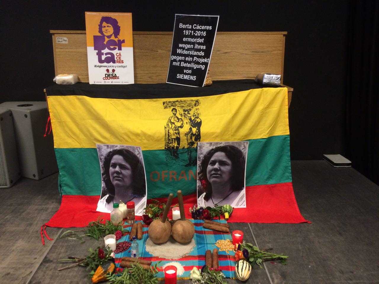 En el día de la resistencia de los pueblos indígenas – – empezando nuestro encuentro internacional en contra del extractivismo y por la autodeterminación de los pueblos – desde Múnich Alemania exigimos Justicia para Berta!