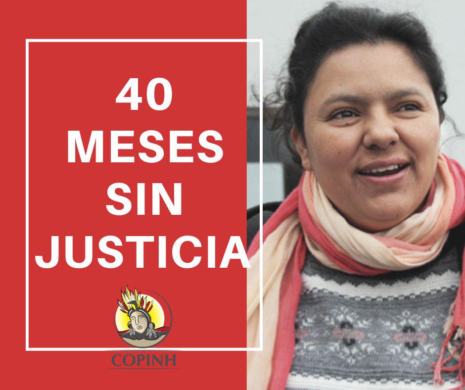 A #40Meses del asesinato de #BertaCáceres y aún #NoHayJusticia. No ha habido captura de TODOS los #AutoresIntelectuales de su crimen ni se ha emitido la sentencia escrita del primer juicio. Exigimos al Estado de Honduras garantizar #JusticiaParaBerta #JusticiaParaHonduras