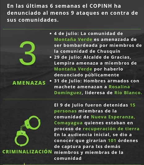 En las últimas 6 semanas el COPINH ha denunciado al menos 9 ataques en contra de sus comunidades.