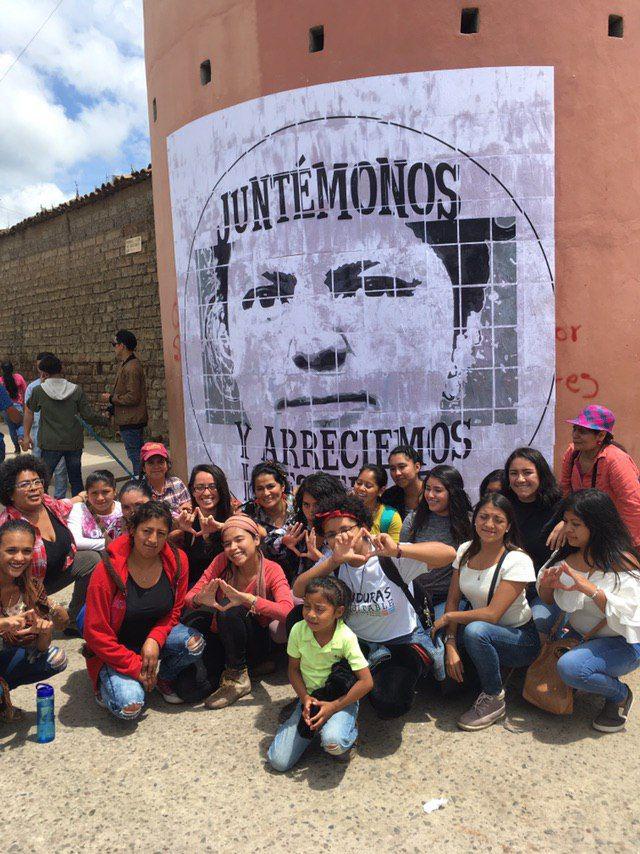 Mujeres organizadas en el COPINH junto con compañeras de secundaria, con el apoyo de la Red Nacional de Defensoras de Derechos Humanos y Producciones y Milagros realizamos este fin de semana un mural en honor a nuestra hermana y compañera Berta.