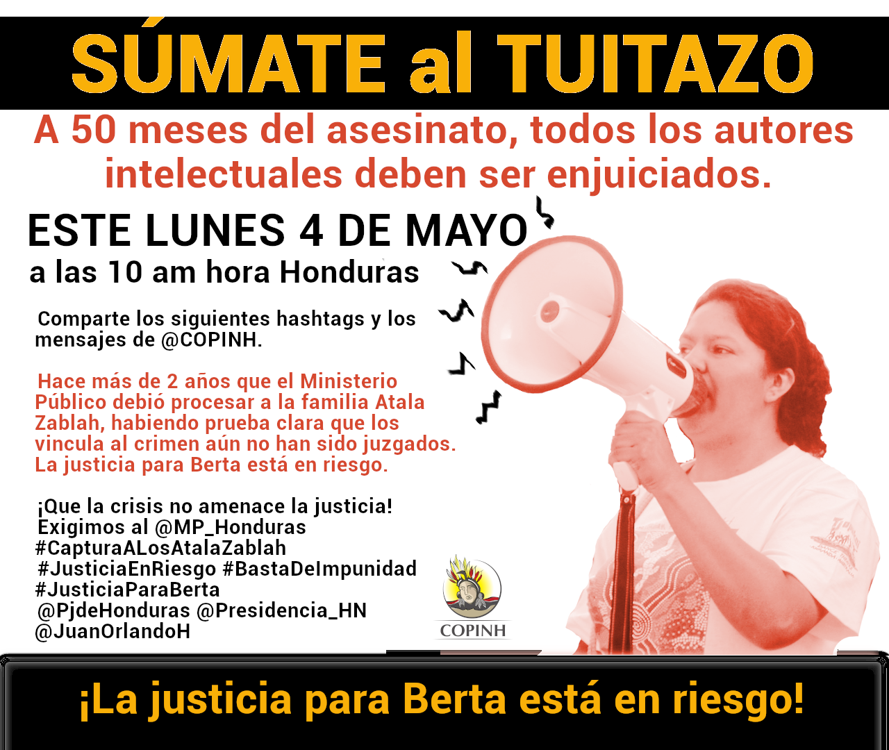 ¡HOY ÚNETE AL TUITAZO! LA JUSTICIA PARA BERTA ESTÁ EN RIESGO