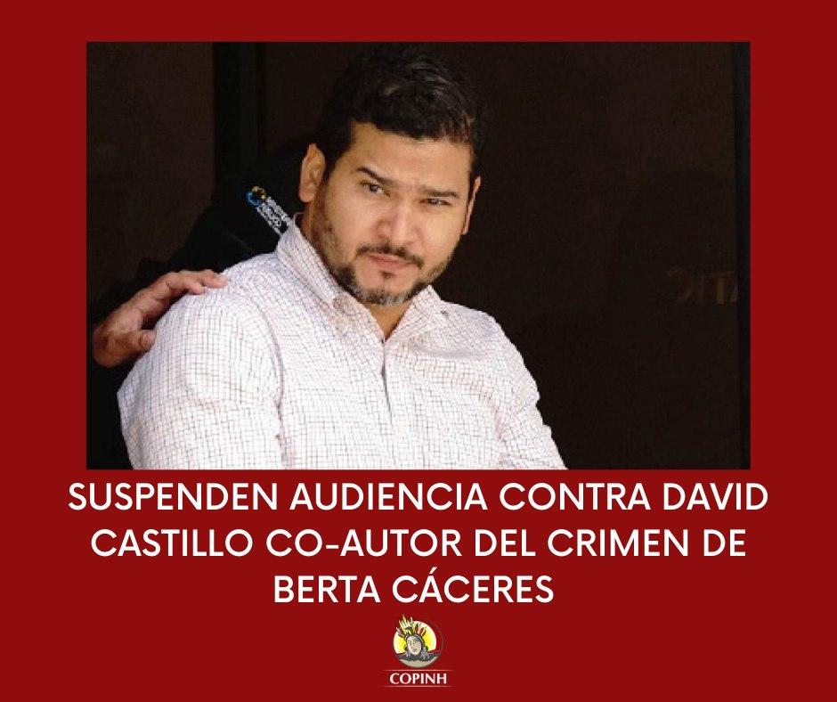 La audiencia programada para esta mañana en contra de David Castillo co-autor del crimen de Berta Cáceres fue suspendida por la presentación de una nueva recusación en contra del Tribunal, aduciendo que éste es enemigo de Castillo, por lo que no debe conocer el caso.