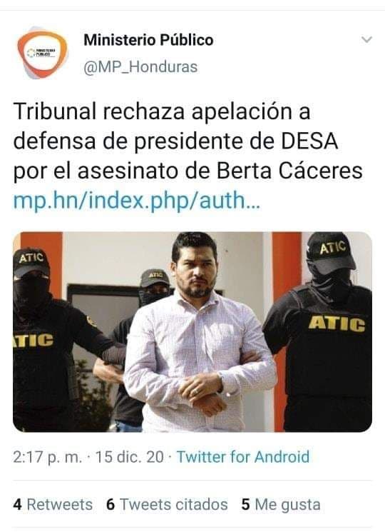 AQUI la nota completa del Ministerio Público: Tribunal rechaza apelación a defensa de presidente de DESA por el asesinato de Berta Cáceres