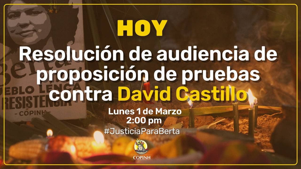 Denunciamos que el Tribunal rechaza los informes de la CIDH en los que nuestra compañera #BertaCáceres daba a conocer las amenazas y ataques vividos por parte de empleados de DESA incluido David Castillo.