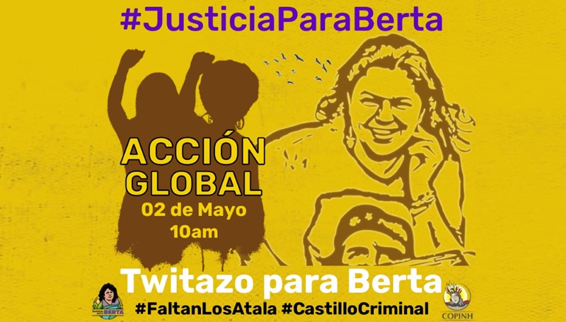 Este 2 de mayo a las 10:00 am (HN) te invitamos a sumarte al “Twitazo para Berta”