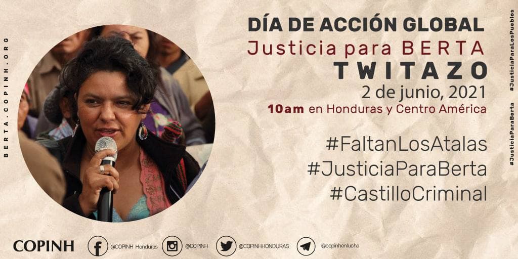 Selección de la solidaridad internacional a la acción global en el marco de los 63 meses de la siembra de nuestra compañera Berta Cáceres, publicadas en twitter. ( seguiremos subiendo mas )
