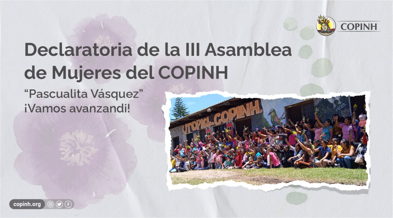- Que todos los Consejos Indígenas y estructuras de COPINH deben seguir cumpliendo las cuotas de participación política-organizativa de las mujeres y que deben dar el espacio para la organización y respaldo al liderazgo de las mujeres.