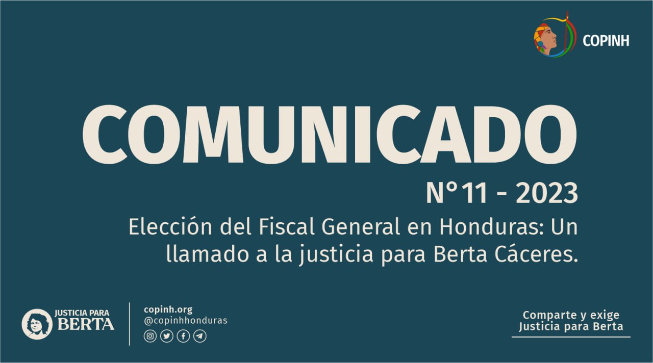 En primer lugar, hacemos un llamado para que la selección del fiscal y del fiscal adjunto se lleve a cabo siguiendo rigurosamente los procedimientos establecidos, y que esta decisión esté orientada hacia el beneficio de la comunidad en su conjunto, en lugar de ser influenciada únicamente por consideraciones políticas. Por ello, la elección debe ser en los tiempos que estipula la ley, para que no se le dé ni un solo día de ampliación al fiscal general Óscar Fernando Chinchilla, que es cómplice de todos los crímenes contra las comunidades indígenas y cómplice de la falta de justicia para Berta Cáceres por su falta de compromiso en la captura de los autores intelectuales.