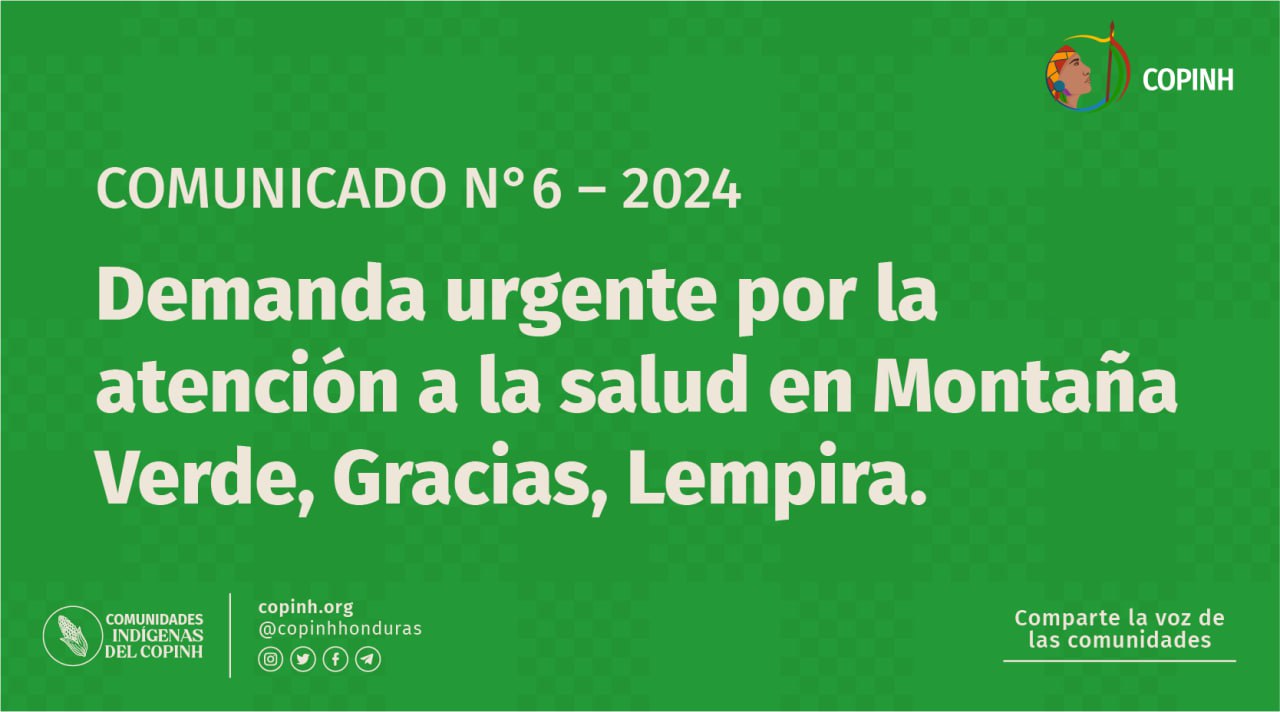 El Consejo Cívico de Organizaciones Populares e Indígenas de Honduras (COPINH) junto al Consejo Indígena de Montaña Verde expresamos la profunda preocupación ante la demora y negligencia del alcalde de Gracias, Lempira, Pedro Escalante y de las Autoridades de la Red Descentralizada de Salud de Gracias en garantizar el acceso a servicios de salud básicos para nuestras comunidades indígenas de Planes y Vertientes en Montaña Verde.