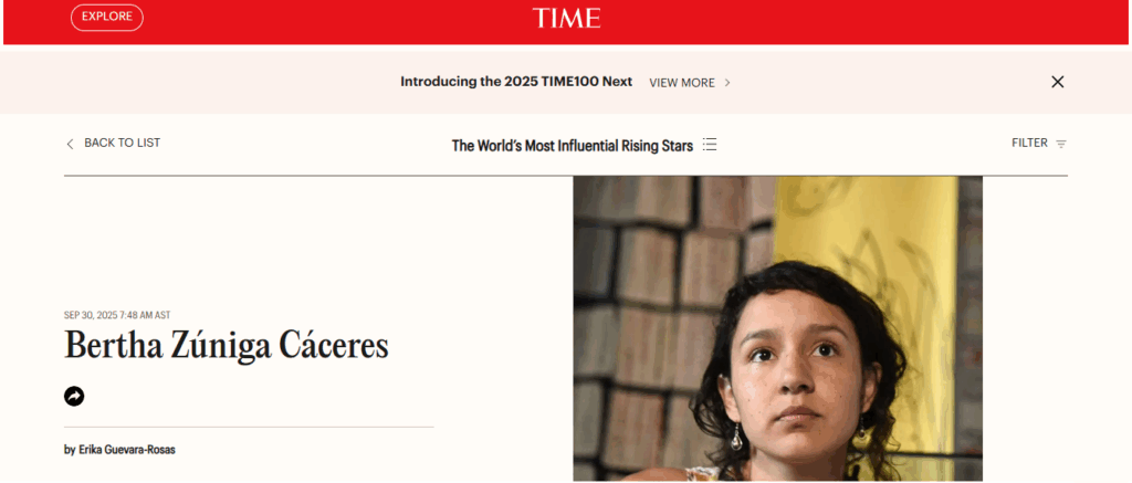 La revista TIME reconoce a Bertha Zúniga Cáceres como una de las voces emergentes más influyentes del planeta
