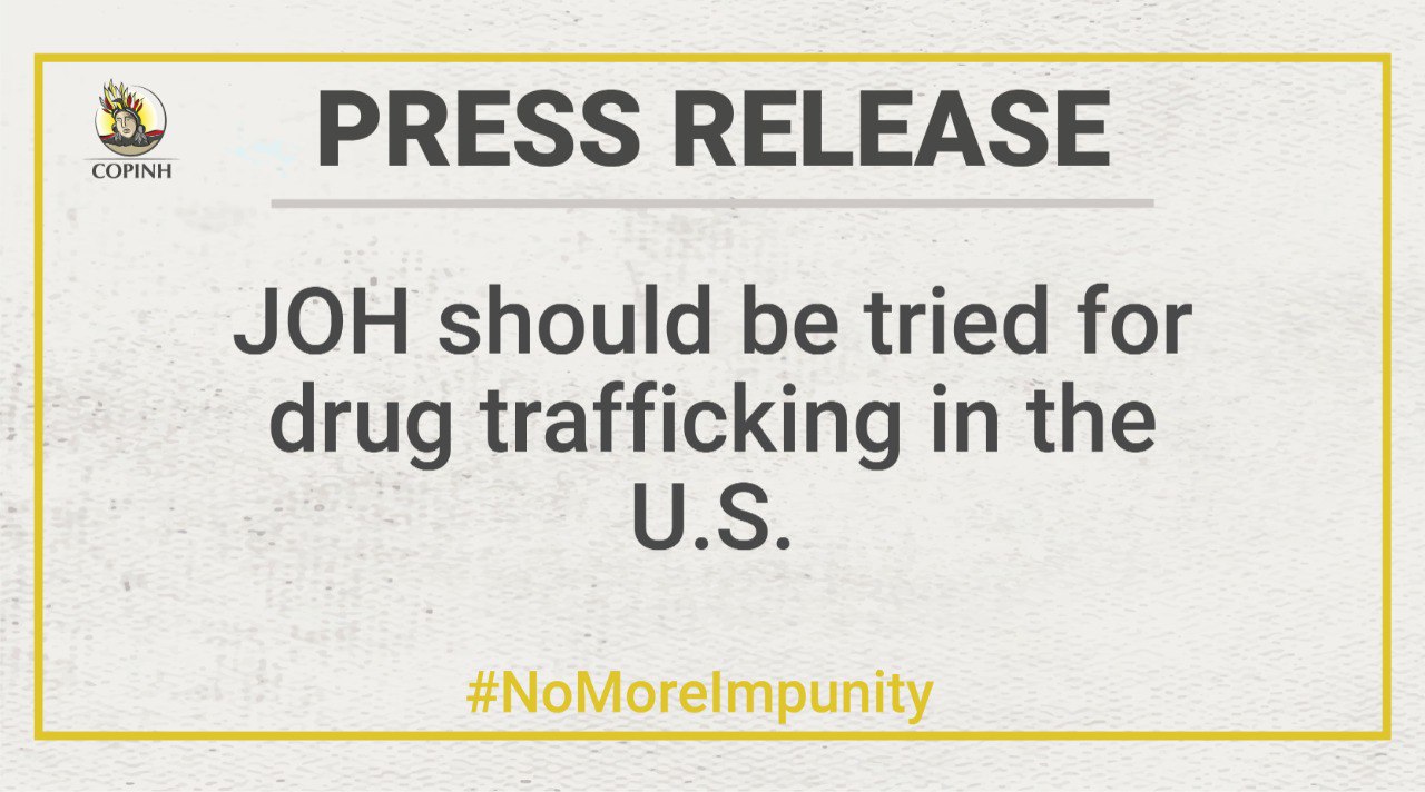 PRESS RELEASE: JOH should be tried for drug trafficking in the U.S.