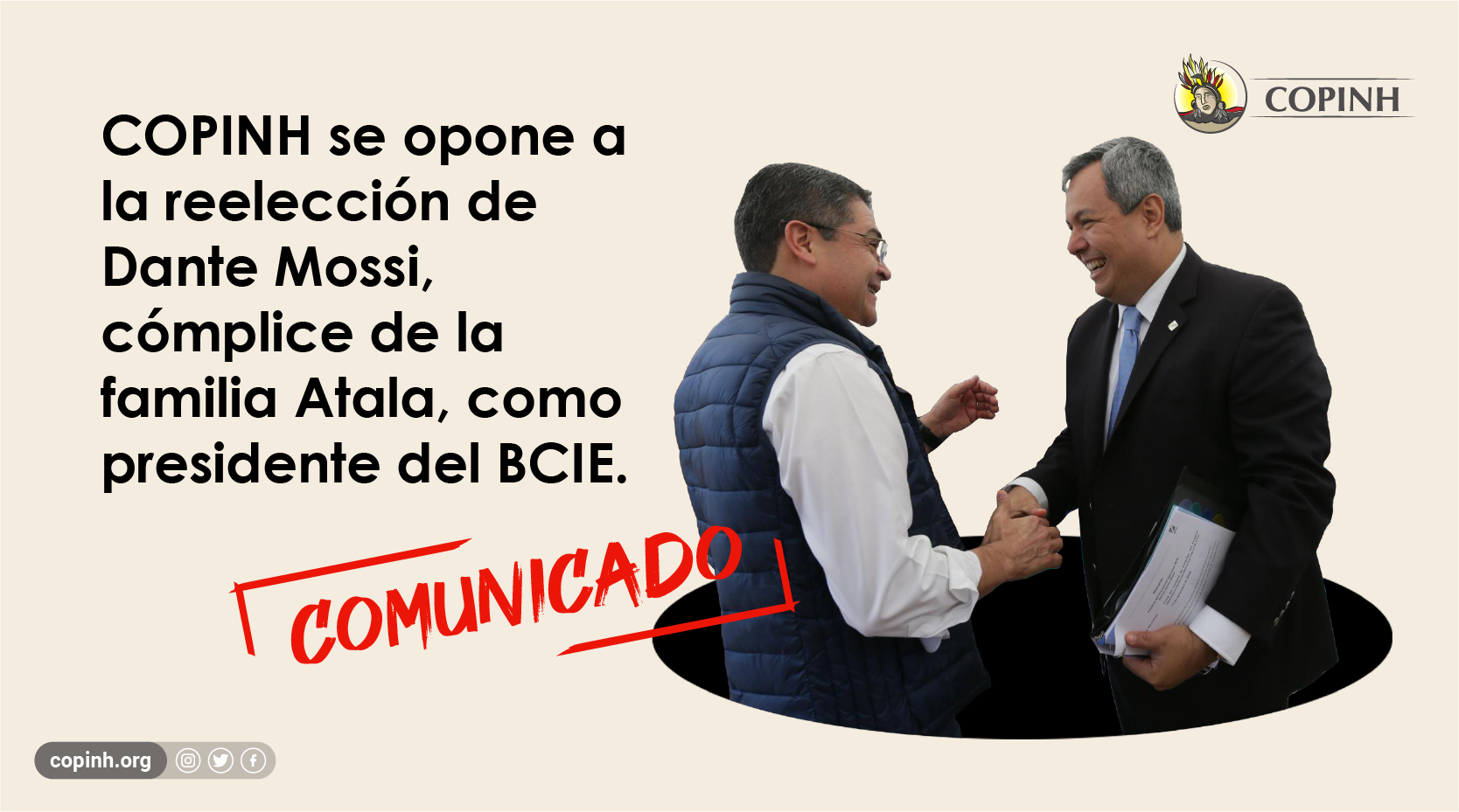 Press Release 09 - 2023 COPINH opposes the reelection of Dante Mossi, accomplice of the Atala family, as president of CABEI. COPINH, in view of the intention to re-elect Dante Mossi, executive president of the Central American Bank for Economic Integration (CABEI), in the assembly of governors this Friday, May 12, 2023, informs the national and international community of the…
