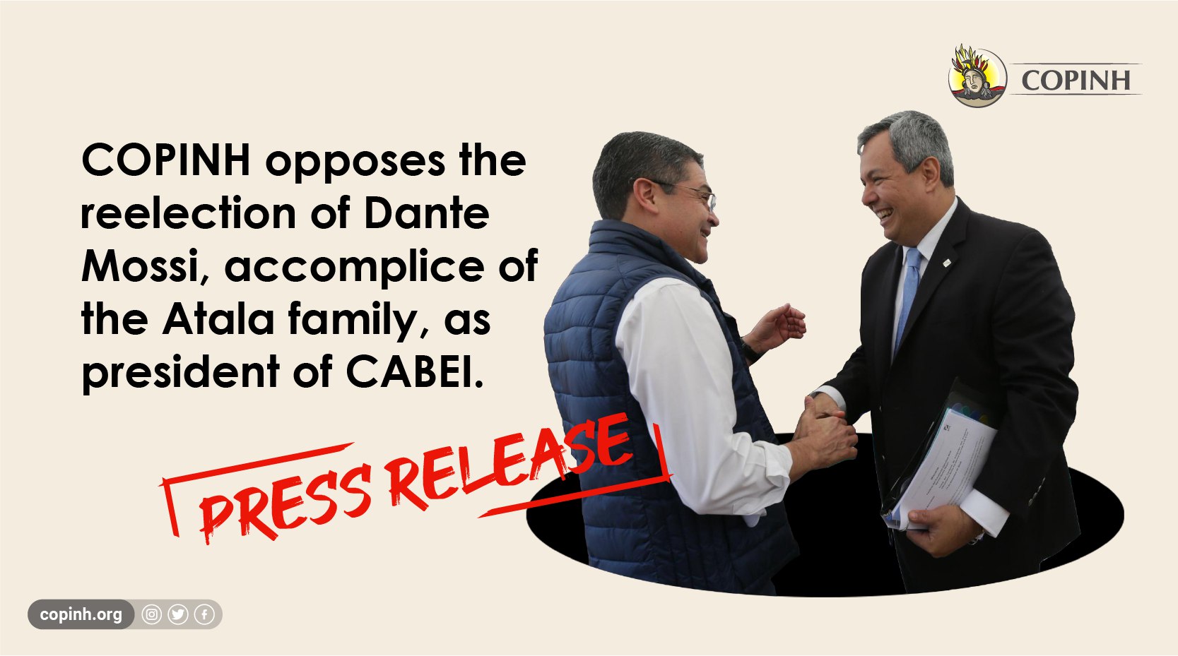 COPINH opposes the reelection of Dante Mossi, accomplice of the Atala family, as president of CABEI.