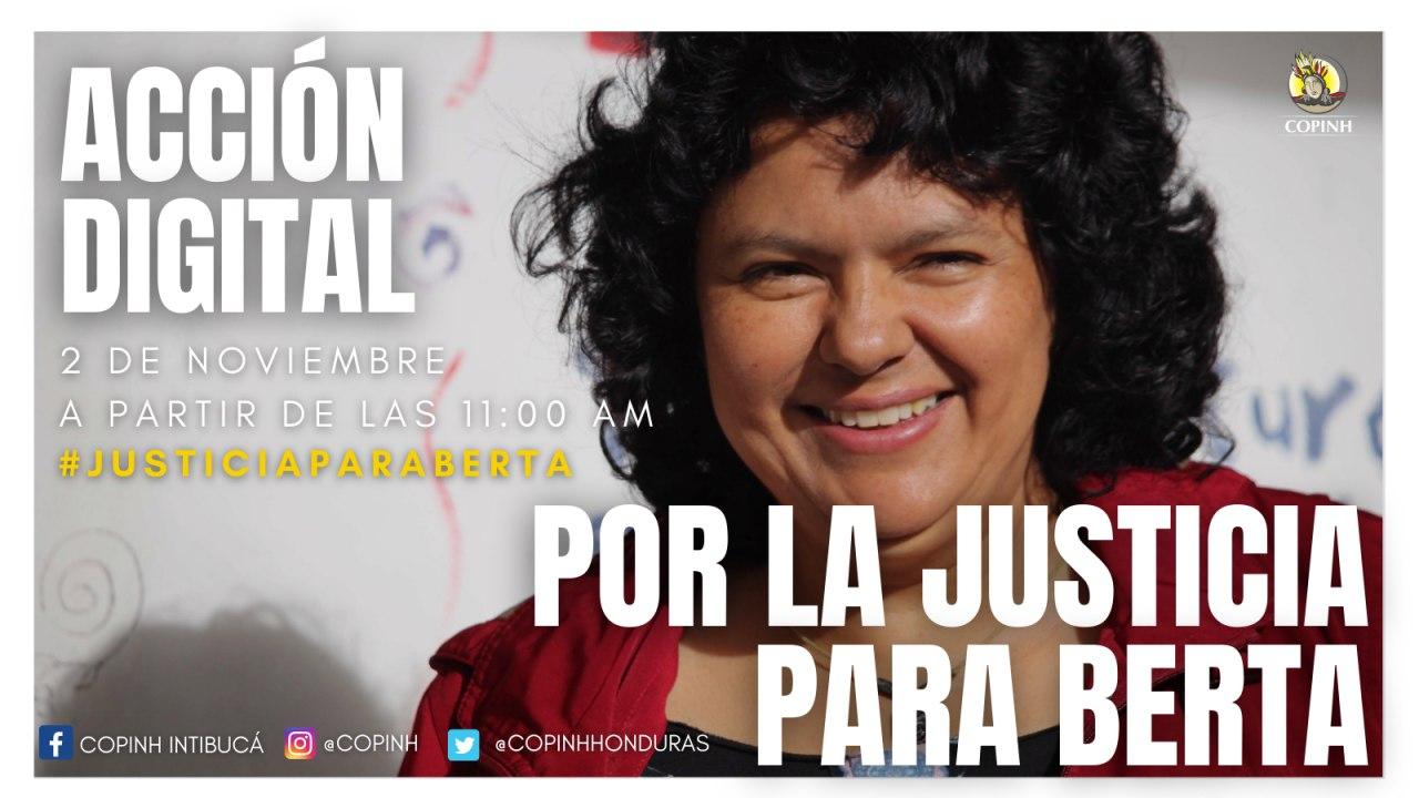 A 56 meses de la siembra de nuestra compañera Berta Cáceres, seguimos exigiendo justicia. (HERE in English) Este lunes 2 de noviembre a 56 meses del asesinato de nuestra compañera Berta Cáceres, exije junto a nosotras y nosotros ¡Justicia Para Berta! Este 2 de noviembre, conmemoramos el Día de Muertos donde honramos a nuestras ancestras y ancestros que nos acompañan…