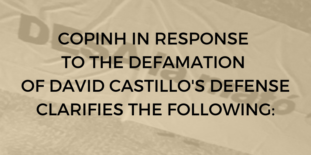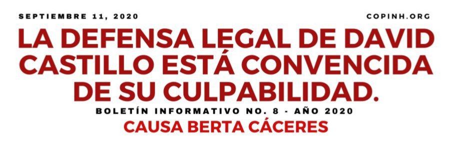 Hoy debió realizarse la audiencia de revisión de medidas en el proceso contra David Castillo, empleado de los Atala y co-autor del crimen contra #BertaCáceres.Sin embargo, una vez se ve retrasado el proceso debido a acciones dilatorias de su defensa. #BastaDeImpunidad pic.twitter.com/BmMkmzhuET— COPINH (@COPINHHONDURAS) September 22, 2020 Las maniobras dilatorias de la defensa de David Castillo han retrasado el proceso…