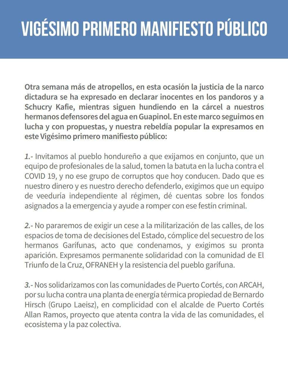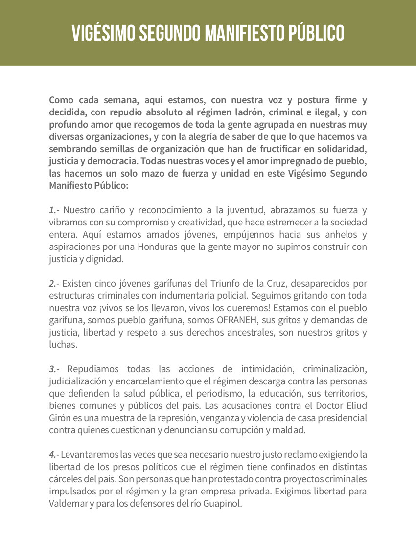 Causa Berta Cáceres. (HERE in English) Hijas e hijo de Berta Cáceres junto al equipo legal y el Consejo Cívico de Organizaciones Populares e Indígenas de Honduras COPINH hacen del conocimiento de la opinión pública nacional e internacional lo siguiente acerca de las recientes noticias del cambio de la jueza en el proceso contra David Castillo por el asesinato de…