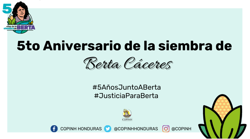 Este 2 de marzo conmemoramos 5 años de la siembra de nuestra compañera Berta Cáceres, 5 años de lucha contra la impunidad e injusticias en Honduras, 5 años de enfrentarnos a grandes poderes económicos y políticos que intentan arrebatarnos la justicia que está en nuestras manos. Al mismo tiempo, son 5 años de construir lazos de solidaridad entre compañeras y…