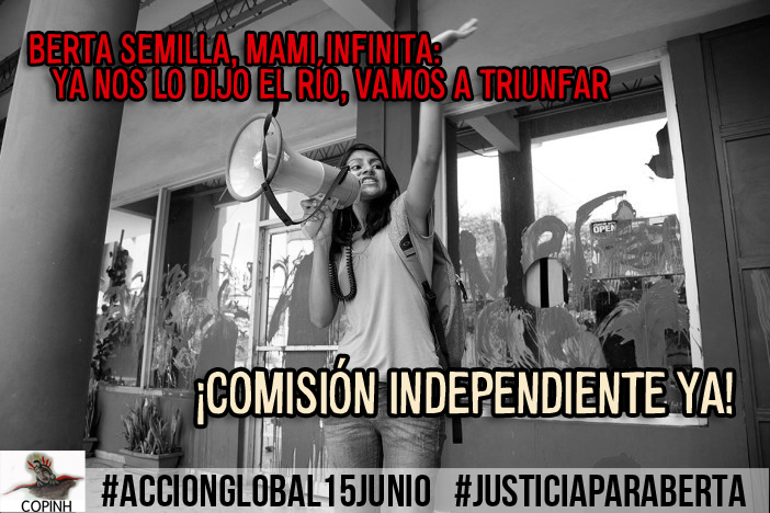 #AccionGlobal15Junio "JusticiaParaBerta". COMISION INDEPENDIENTE YA! CANCELACION DEL PROYECTO DE MUERTE AguaZarca FUERA DESA!!!