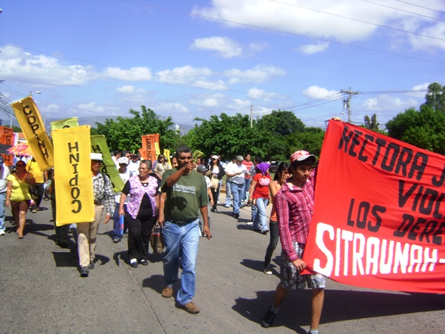 1. Condenamos la represión del régimen continuador del golpe de estado presidido por el títere de la oligarquía Porfirio Lobo Sosa, en contra de miles de manifestantes pacíficos que disfrutarían de un concierto en la plaza central de San Pedro Sula, dejando como saldo el asesinato de una persona, la intoxicación de muchas y muchos manifestantes por el lanzamiento de…